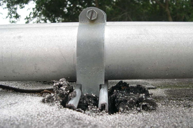 Properly functioning rooftop supports don’t allow pipes to sag. Visibly sagging pipes indicate a support system failure that has progressed to the point of being a serious problem.
