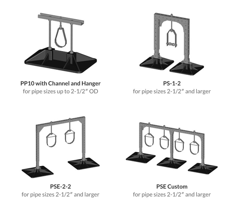Roof support systems are not a one-size-fits-all product. Every system is customized according to the exact specifications of your roof environment and calculated using engineering tables to verify pipe-support and roof-load requirements. The most important part of the design process is making sure that the system is designed according to the building structure’s allowable load. Finally, braces and supports are selected depending on the type and size of the pipe.