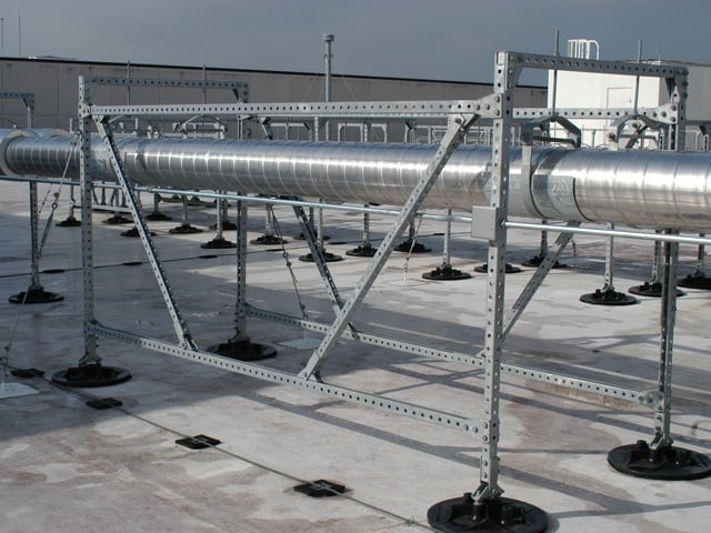Our team will work with a licensed PE to ensure that the high wind or earthquake resistant design we create is up-to-code per state and suitable for your rooftop equipment. Our advanced high wind and seismic, earthquake-resistant designs are manufactured from hot-dipped galvanized steel and supported by high-density polypropylene bases.
