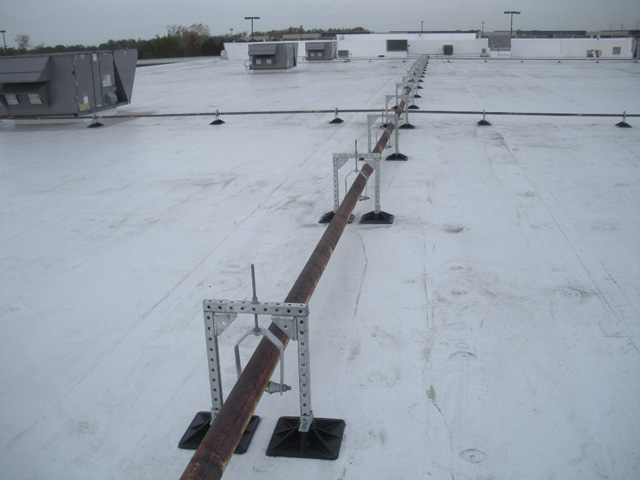 When the purpose of your establishment is to house and process merchandise, a functional rooftop support system is essential to protecting inventory. Rooftop equipment like piping, ducting, and HVAC units can put your roof’s performance at risk if a proper support system is not in place. Problems can begin as early as the design process. If your system is required to have penetrations to mount equipment, you will be compromising your roof before your warehouse opens for business. Penetrations can negate your roof’s warranty, create an unsafe working environment for technicians and service professionals, and may eventually result in water damage to your inventory and equipment.