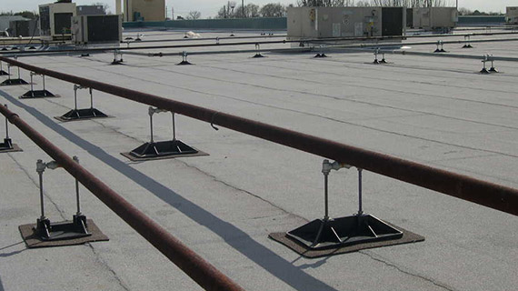 The PP10 with Pipe Roller Support model is designed for gas pipes up to 3 ½” OD with a standard height of up to 12” above the roof surface. Available up to 16” height by request.