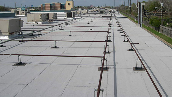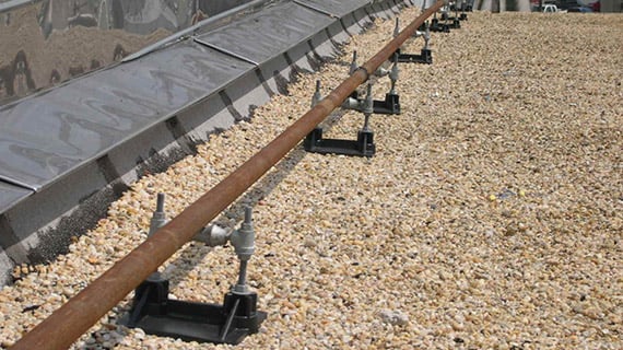 The SS8 with Roller-model's design of pipe support structures accommodates gas pipes up to 2 ½” OD and not exceeding 10” in height above the roof surface.