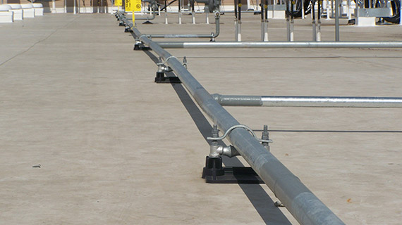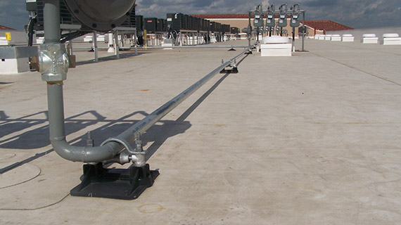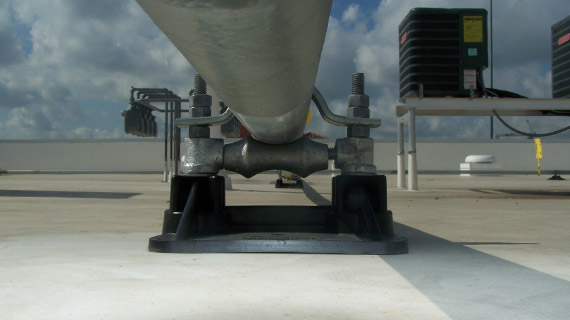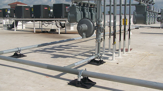 The SS8 with Roller Low Profile modular pipe supports for gas pipes up to 2 ½” OD, set at 3 3/4” above the roof surface, and is non-adjustable.