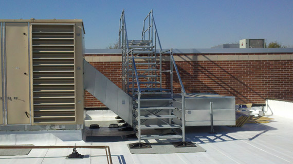 PHP Rooftop Crossover Stairs are designed to provide a safe means of access by crossing over any rooftop obstruction such as piping, ducting, or equipment.
