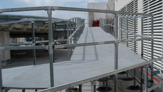 The PHP Industrial Ramp Support provides a safe means of access by crossing over any rooftop obstruction such as piping, ducting, or equipment.